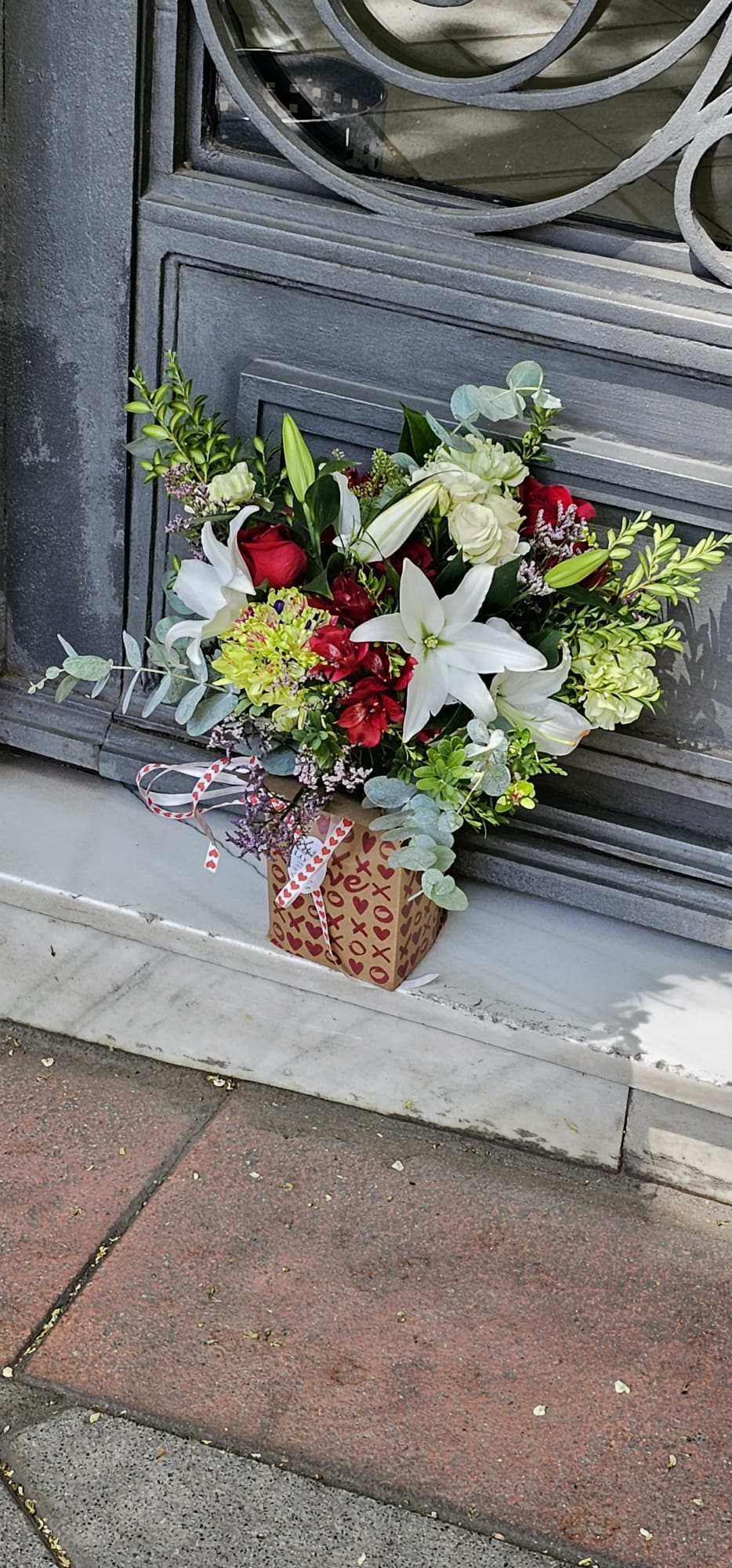 Ramo con lilium, astromerias, rosas y eucalipto.