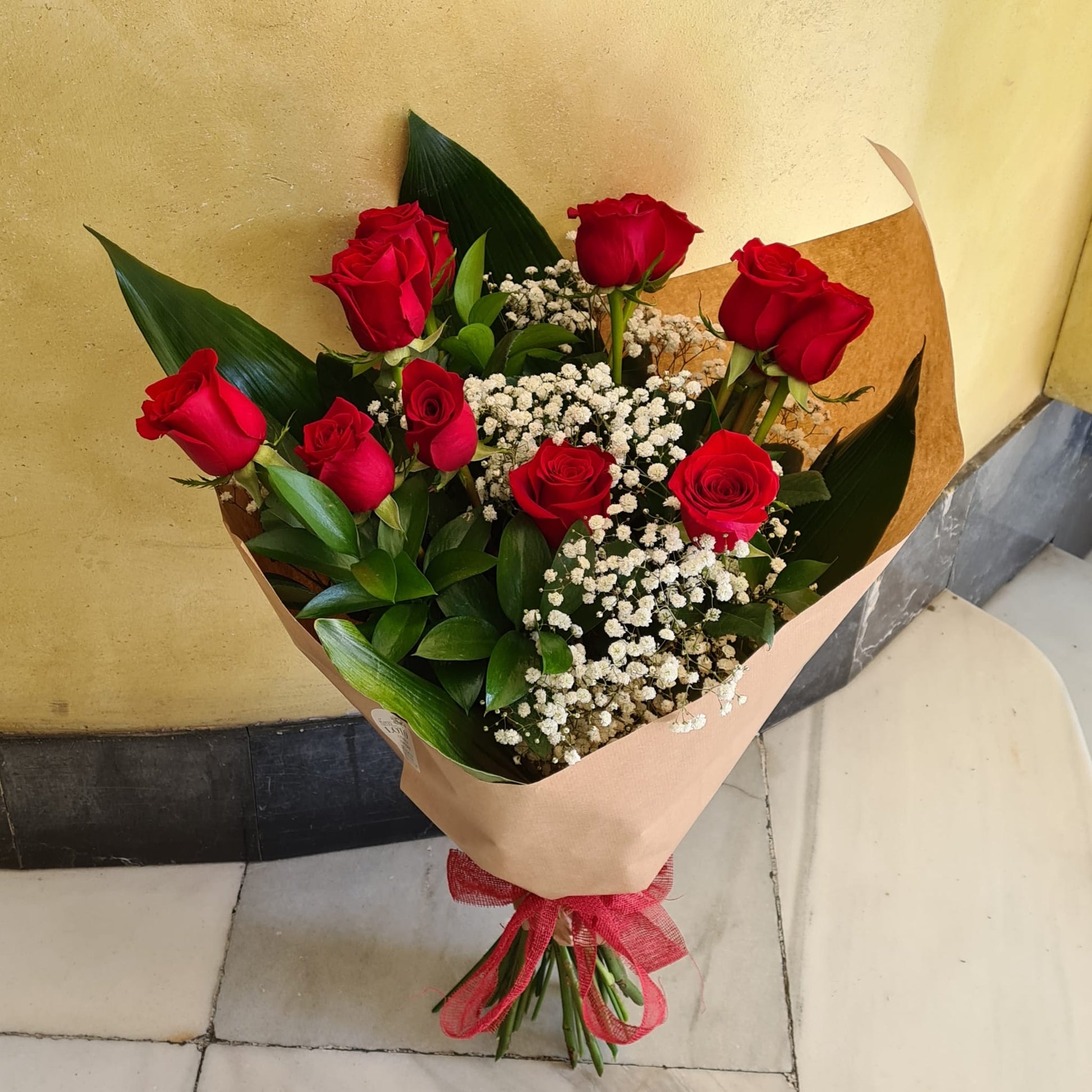 Ramo con rosas de color rojo de rallo largo.